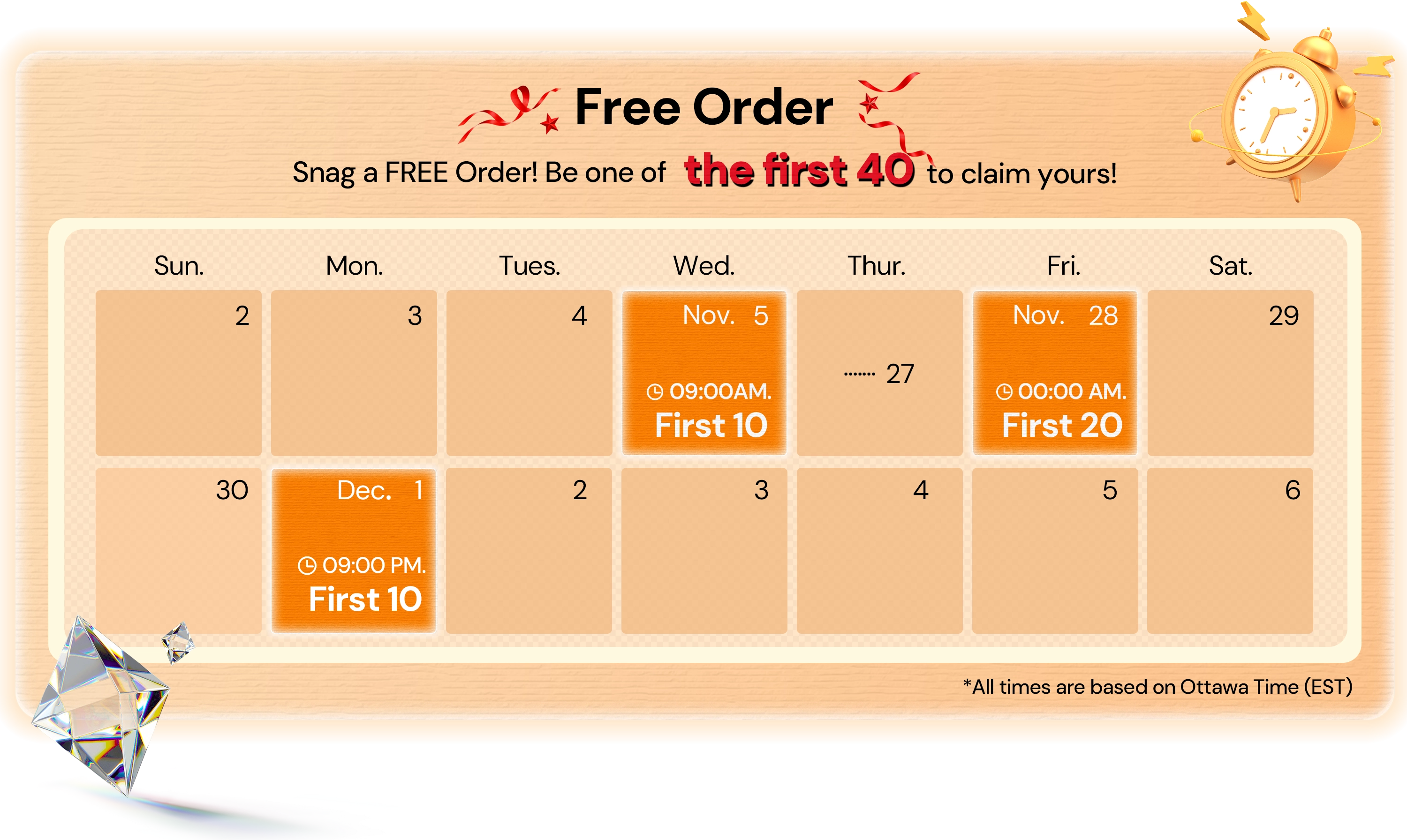 Promotion Validity: Only orders placed and paid after the specified times are eligible. Orders placed or paid before these times are not eligible.