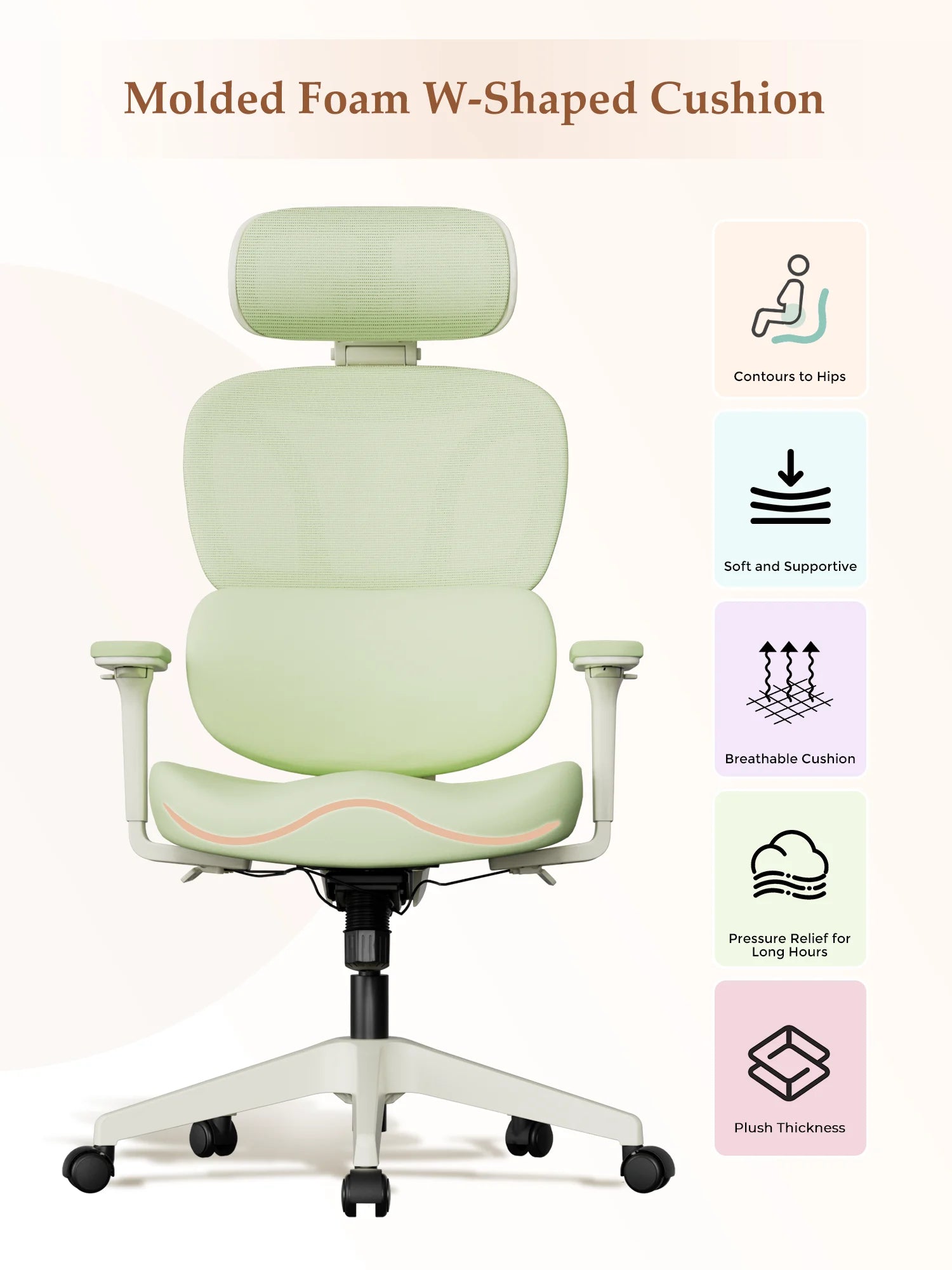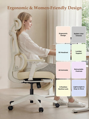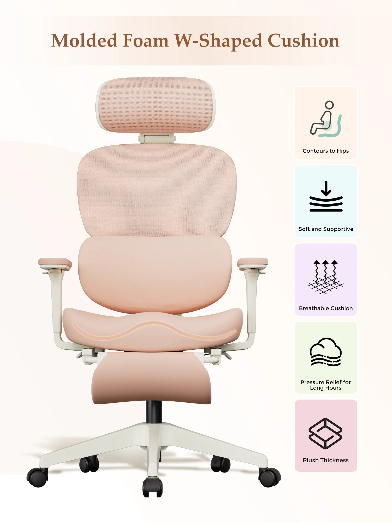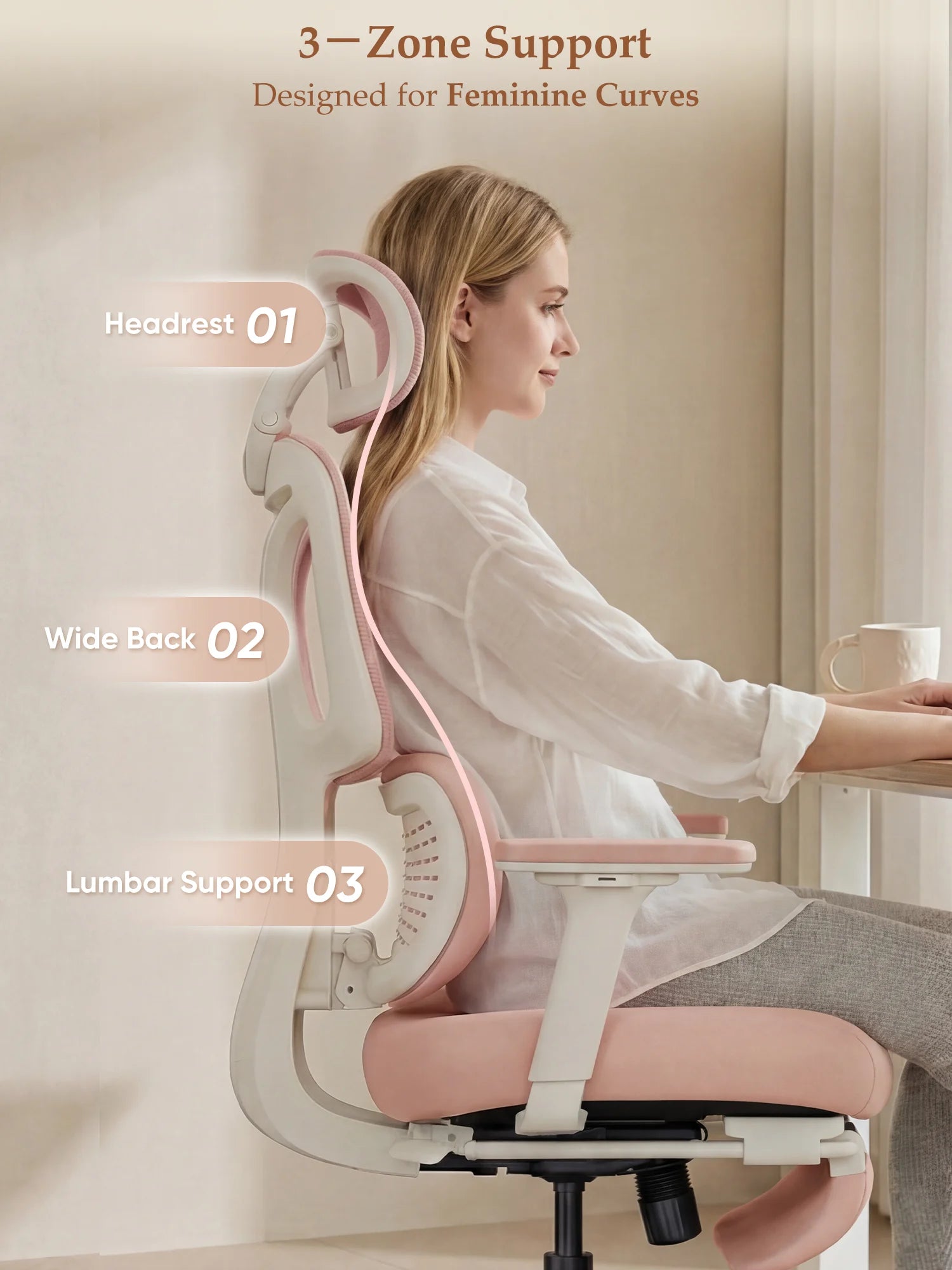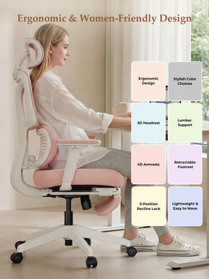 Upgraded wraparound soft lumbar support fits the natural curves of women’s back and waist. Gently cradles and supports the lower back during long sitting, relieving tension and pressure.