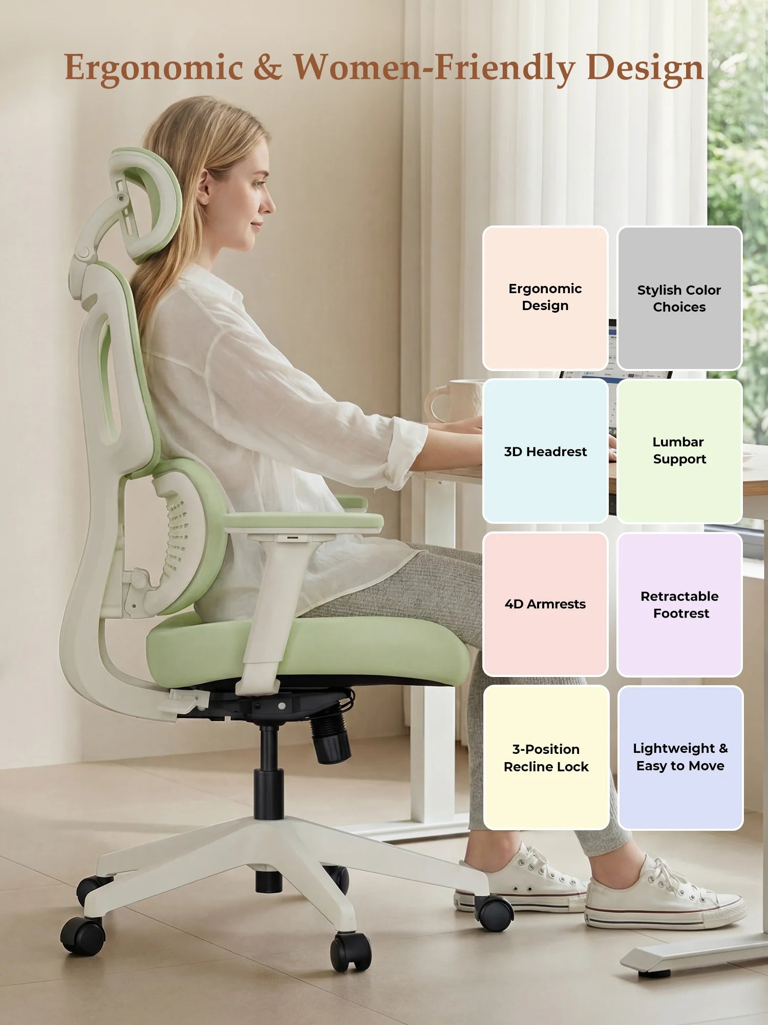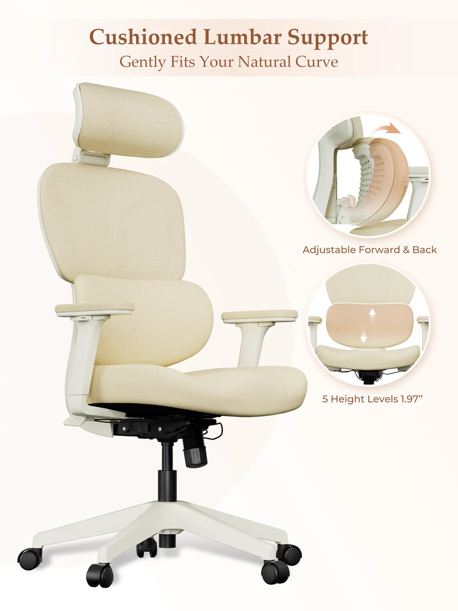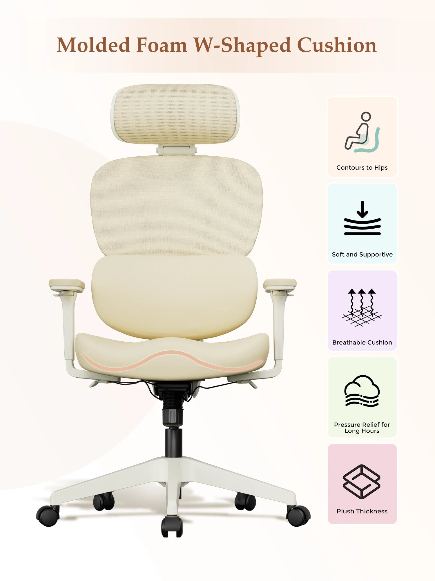Upgraded wraparound soft lumbar support fits the natural curves of women’s back and waist. Gently cradles and supports the lower back during long sitting, relieving tension and pressure.