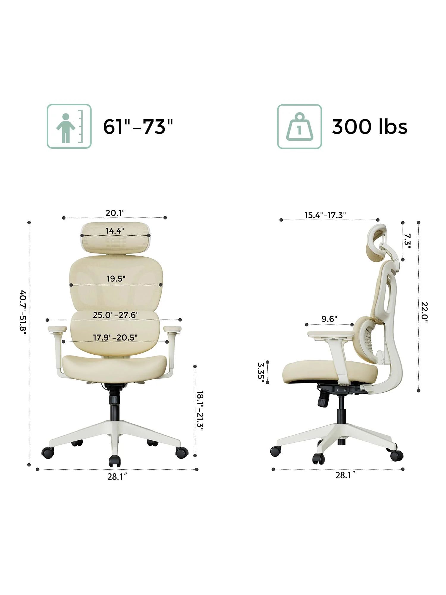 | Seat Depth | 15.4"–17.3" |