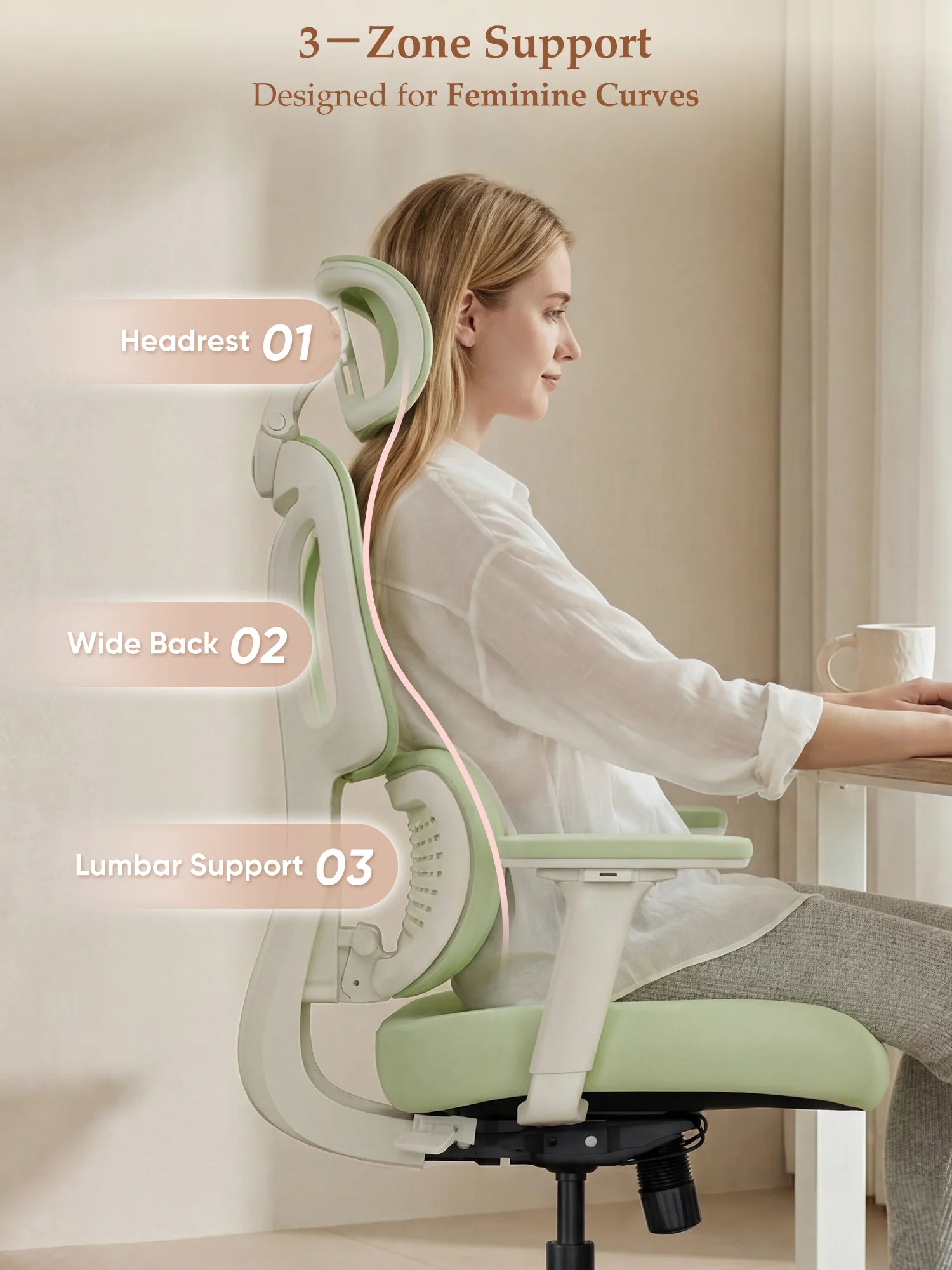 Designed for your everyday life — from home office work to studying, reading, or light leisure. Provides gentle, stable support that keeps you comfortable throughout the day.