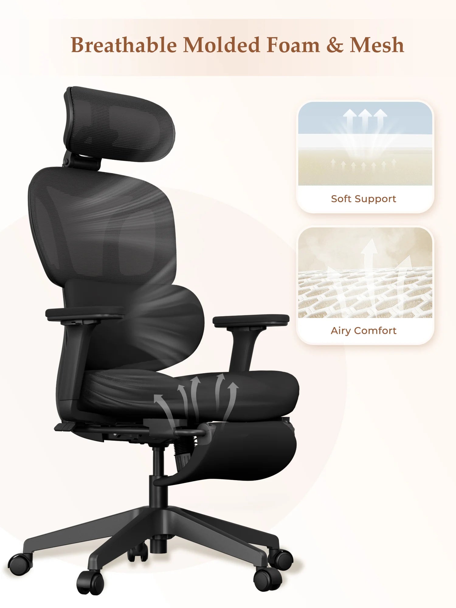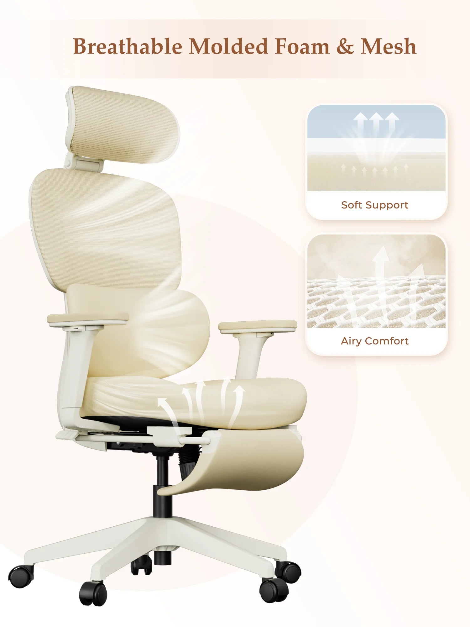 Upgraded molded foam seat cushion offers a soft and delicate touch the moment you sit down. Maintains excellent resilience for long-lasting support, reducing discomfort from prolonged sitting.