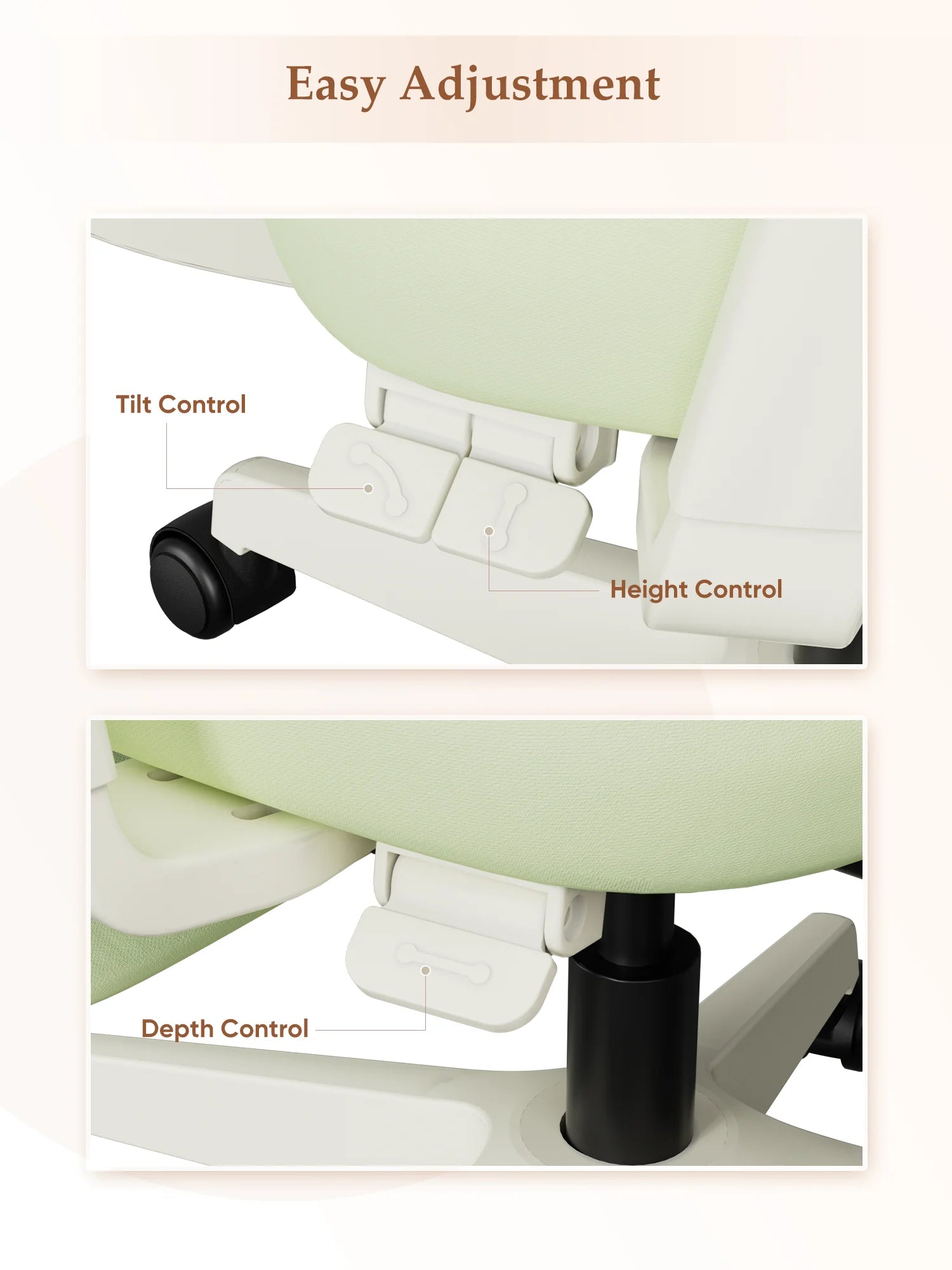 Upgraded 3-button control system with intuitive and simple operation. Adjust your sitting position easily with one touch — no complicated instructions needed.