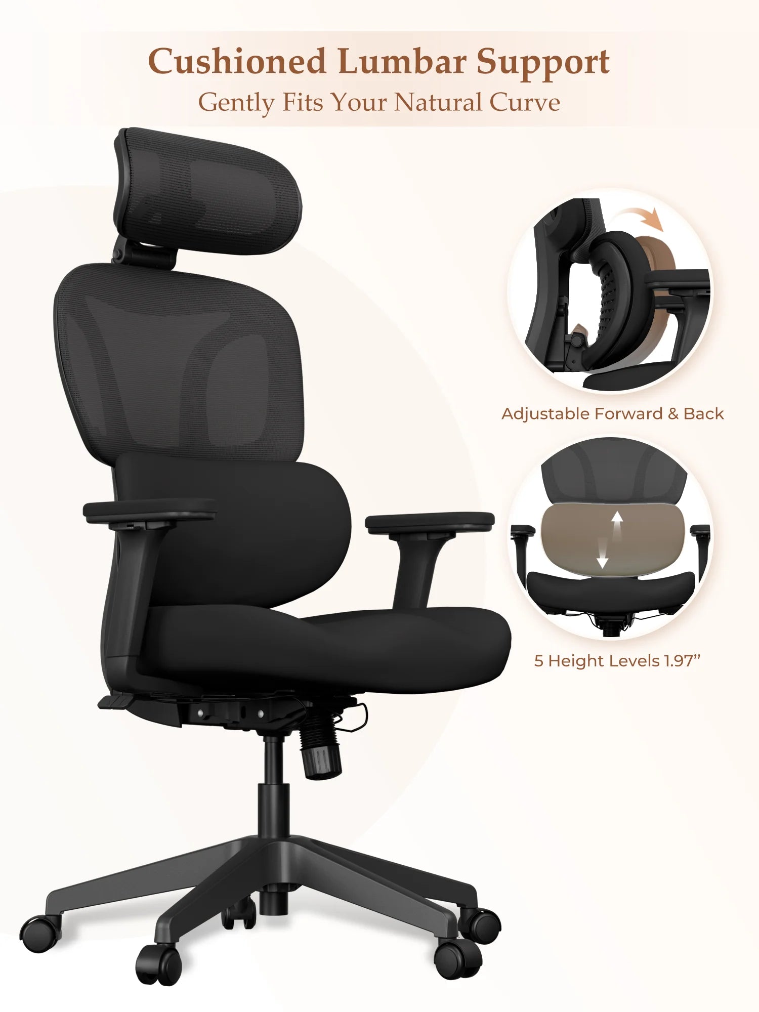 3. Easy 3-Button Adjustment, Find Your Perfect Posture Effortlessly