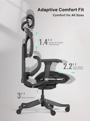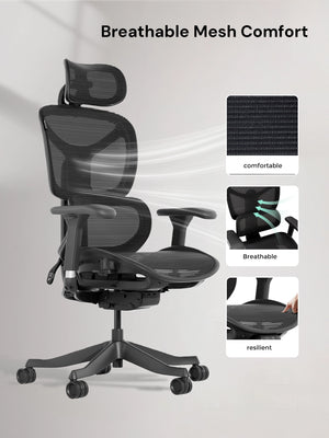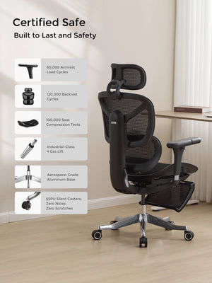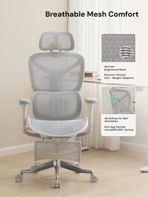 High-elastic breathable mesh provides firm yet comfortable support for long sitting hours. The reinforced frame ensures long-lasting durability and stability.